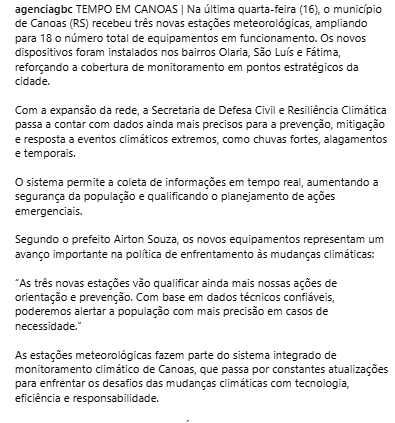 Victor G. Posted September 21, 2025 at 10:56 AM Share Posted September 21, 2025 at 10:56 AM (edited) On 9/21/2025 at 12:49 AM, Tavares said: Eu vi o vídeo do blogue dessa tarde. Assim eu acho uma importante prestação de serviço que fazem e tem bastante alcance e tal, mas usar esse espaço pra defesa deixou o vídeo bastante poluído, sério. A meteorologista assumiu que é ela quem cuida das redes sociais do blogue e que só apaga comentários que são desrespeitosos. Pois além de apagar comentários meus que nem passaram perto de serem desrespeitosos, (somente algumas correções de informações, não sabem de tudo, ninguém sabe), me BLOQUEARAM! E não só eu, tava conversando com um grupo de amigos da área e TODOS são bloqueados! Ah me poupem! Fico preocupado, perde muito a seriedade dos trabalhos e tá por tudo. Pra não ficar no OFF: Faz calor. Você se refere ao blog da MetSul Meteorologia? Pois também meus comentários foram apagados de lá, e também fui bloqueado. Edited September 21, 2025 at 10:56 AM by Victor G. 10 Link to comment Share on other sites More sharing options...