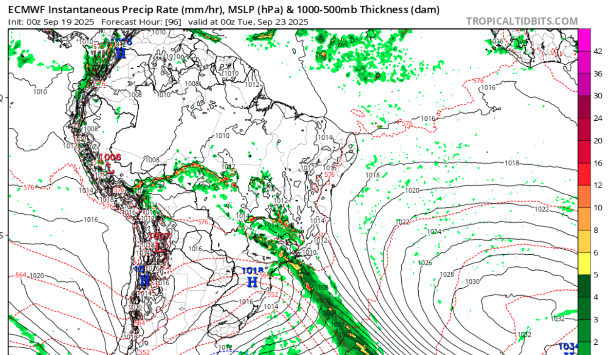 Renan Posted September 19, 2025 at 09:20 AM Share Posted September 19, 2025 at 09:20 AM Início da semana que vem promete entregar muita coisa boa para nós. Essa projeção do EUro 00Z me chamou a atenção demais...com 3 LI's atuando ao mesmo tempo no país! 15 2 Link to comment Share on other sites More sharing options...