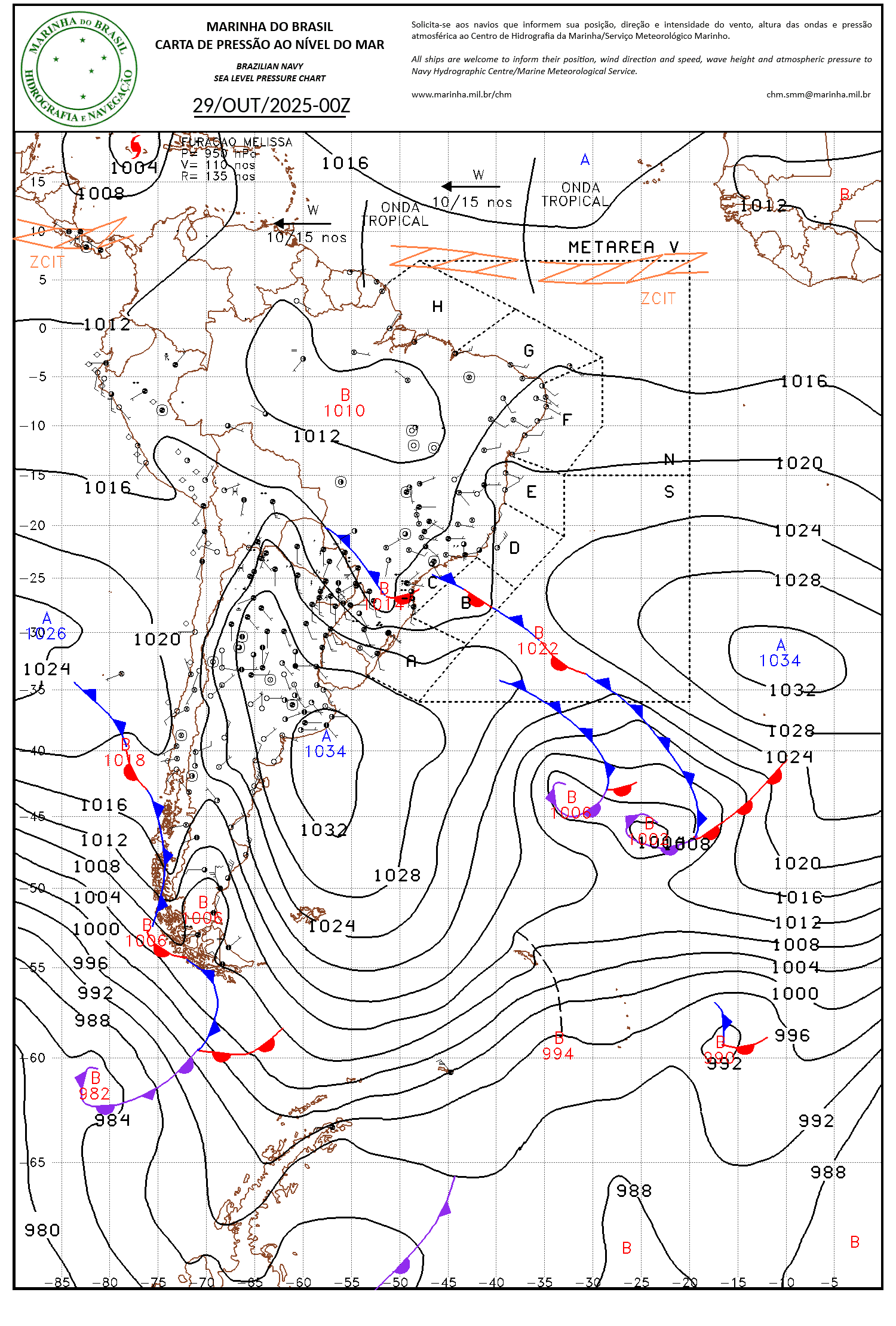 Felipe Backendorf Posted October 29, 2025 at 11:48 AM Author Share Posted October 29, 2025 at 11:48 AM Noite bem chuvosa em Floripa, chegando aos 40mm/24h na Epagri. Às 8h faz 18,4ºC com 97% e venta de S a 9km/h com rajada de 29km/h, sensação de frio. Mínimas de 17ºC e a máximas não devem passar dos 20ºC. Tem uma baixa pressão no litoral jogando ventos marítimos de SE sobre parte de SC, causando essas chuvas constantes. Tubarão, no sul do estado, já tem 100mm/24h Praia dos Açores, no sul da ilha tem 80mm/24h e rajada de 70km/h de SO (devido ao desvio dos ventos SE ao redor da serra do Tabuleiro, que a apenas 10km a ONO passa dos 1000m) próximo a 4h da manhã Dá pra ver o levantamento causado pelo vento de SE: Carta da marinha com a baixa se formando sobre SC/PR: 13 Link to comment Share on other sites More sharing options...