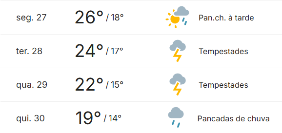 BrunoSaoPauloCapital Posted October 26, 2025 at 08:10 PM Share Posted October 26, 2025 at 08:10 PM A próxima semana aqui em São Paulo capital será MUITO BOA em termos de temperatura, ao meu ver. Hoje foi o pior dia da semana, em relação ao conforto térmico, chegando aos 32 ºC aqui no distrito do Butantã, na zona oeste. Bom pra piscina, mas não para quem não tem piscina. haha Já amanhã (27), teremos uma segunda-feira já com aquele "calorzinho dentro da zona de conforto" chegando aos 26 ºC com a chegada das chuvas à tarde. Na terça-feira teremos o meu verão ideal com a variação 17 ºC / 24 ºC e tempestade possível a qualquer hora. Quarta-feira com friozinho confortável em grande parte do dia, e máxima de 22 ºC ou 23 ºC. E quinta-feira é aquele meu "dia de ir pro shopping com chuva e variação 14 ºC / 19 ºC". kkkk 2025 está sendo muito bom! 15 Link to comment Share on other sites More sharing options...