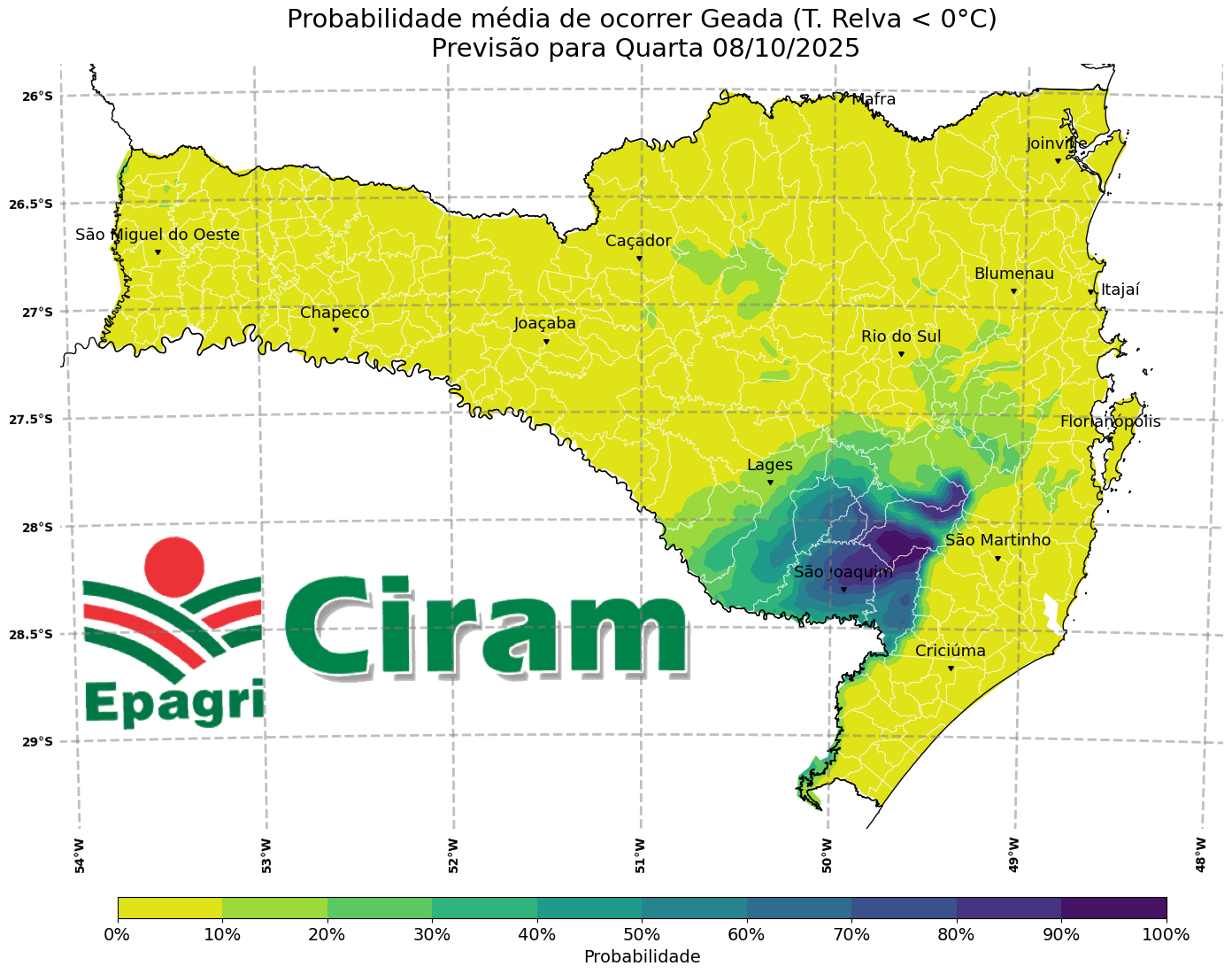 Serrano Posted October 8, 2025 at 10:13 AM Share Posted October 8, 2025 at 10:13 AM E amanheceu com uma boa geada numa legítima invernada de outubro. Temperaturas mínimas (Epagri/Ciram): No município de Urubici uma PWS (Rio Crioulas) registrou -1,9°C. 14 5 Link to comment Share on other sites More sharing options...