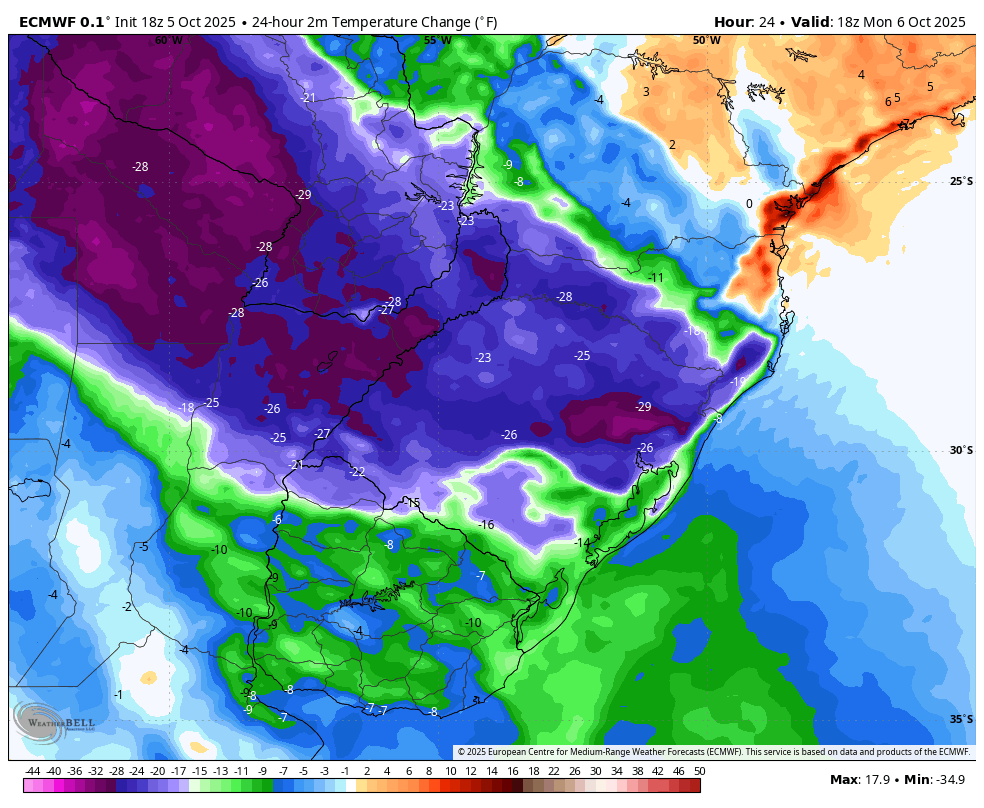Moretão Posted October 7, 2025 at 11:46 PM Share Posted October 7, 2025 at 11:46 PM > Dia de máximas baixas para a época em SC. > Máxima de 8,7°C na Serra do Rio do Rastro. Única sub-10 de outubro. 13 Link to comment Share on other sites More sharing options...