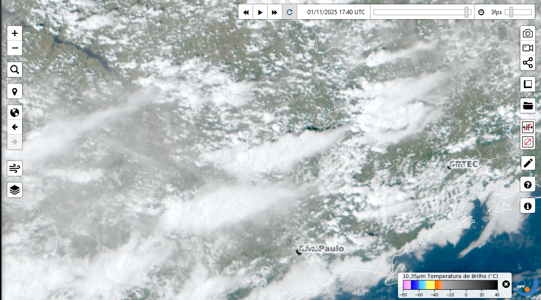 Edison Bocorny Jr Posted November 3, 2025 at 12:05 AM Share Posted November 3, 2025 at 12:05 AM Dia de muitas nuvens, chuva inapreciável de manhã e aberturas de sol a tarde, temperatura entre 18.7 e 27.9 graus. Esta noite deve chover fraco até o amanhecer da segunda, só devendo retornar quarta a tarde. 7 Link to comment Share on other sites More sharing options...