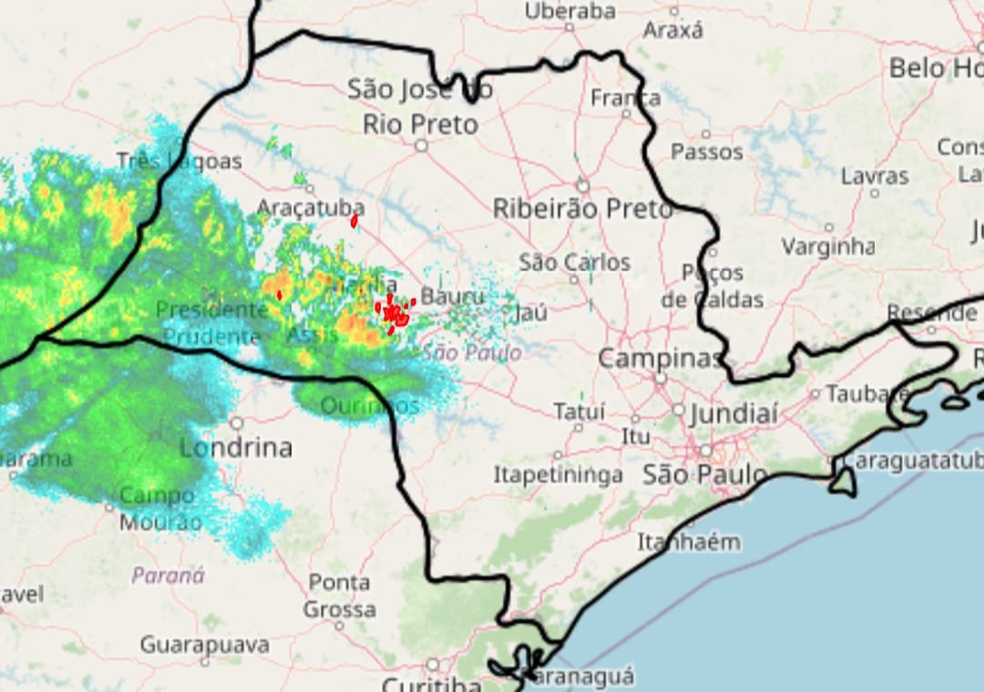 Renan Posted November 5, 2025 at 04:44 PM Share Posted November 5, 2025 at 04:44 PM Estado de SP sendo bombardeado por descargas elétricas nessa tarde: Por aqui, até o momento, uma tarde sem nuvens de desenvolvimento vertical, apenas calor severo. A estação marca 32,7°C com 54% de umidade. MUITO DESAGRADÁVEL. Ontem, a zona da mata mineira teve o desenvolvimento de algumas boas tempestades, com direito a granizada em Matias Barbosa (cidade vizinha a JF). 13 1 Link to comment Share on other sites More sharing options...