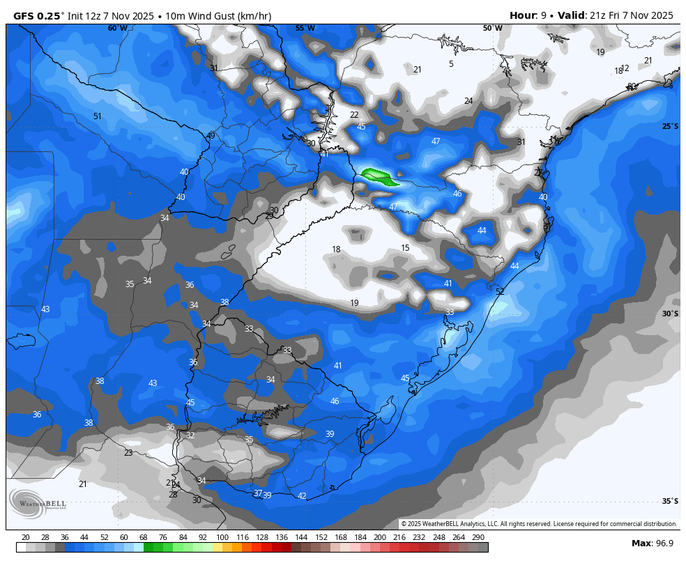 Moretão Posted November 8, 2025 at 12:44 AM Share Posted November 8, 2025 at 12:44 AM Em 07/11/2025 em 21:37, Edison Bocorny Jr disse: Permaneço aguardando a rajada de 82 km/h, desta vez na última atualização do euro e até agora ZERO Km/h. A temperatura hoje oscilou entre 14.5 e 17.0 graus, com pancadas de chuva moderada a tarde, cessando ao anoitecer. Já a previsão especialmente do euro, é de vento forte agora associado ao ciclone extratropical que está se formando na costa e teria trajetória na metade norte pela Lagoa dos Patos, passando pela RM POA e borda da serra, saindo pelo litoral norte. La acredito que a rajada atinja 90/100 km/h na madrugada e amanhecer. Ficou feio para o Europeu e para outros modelos que foram atrás. O GFS sabia de algo! Mais uma vez indo bem no vento! 11 1 Link to comment Share on other sites More sharing options...