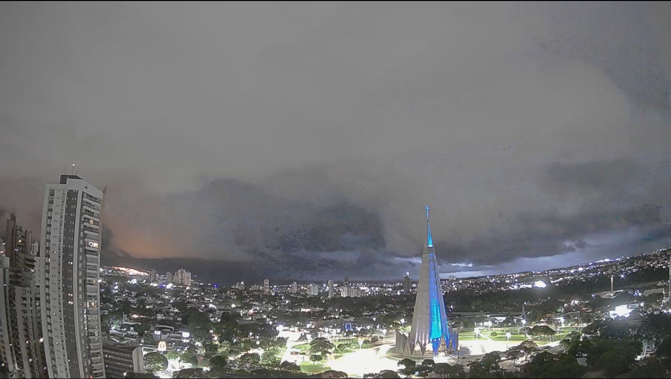Erik K. dos Santos Posted November 8, 2025 at 02:22 AM Share Posted November 8, 2025 at 02:22 AM Shelf cloud noturna em Maringá (PR), a "capital brasileira das arcus", registrada pela câmera da Clima ao Vivo. Há também o que aparenta ser uma wall cloud atrás da shelf. 13 Link to comment Share on other sites More sharing options...