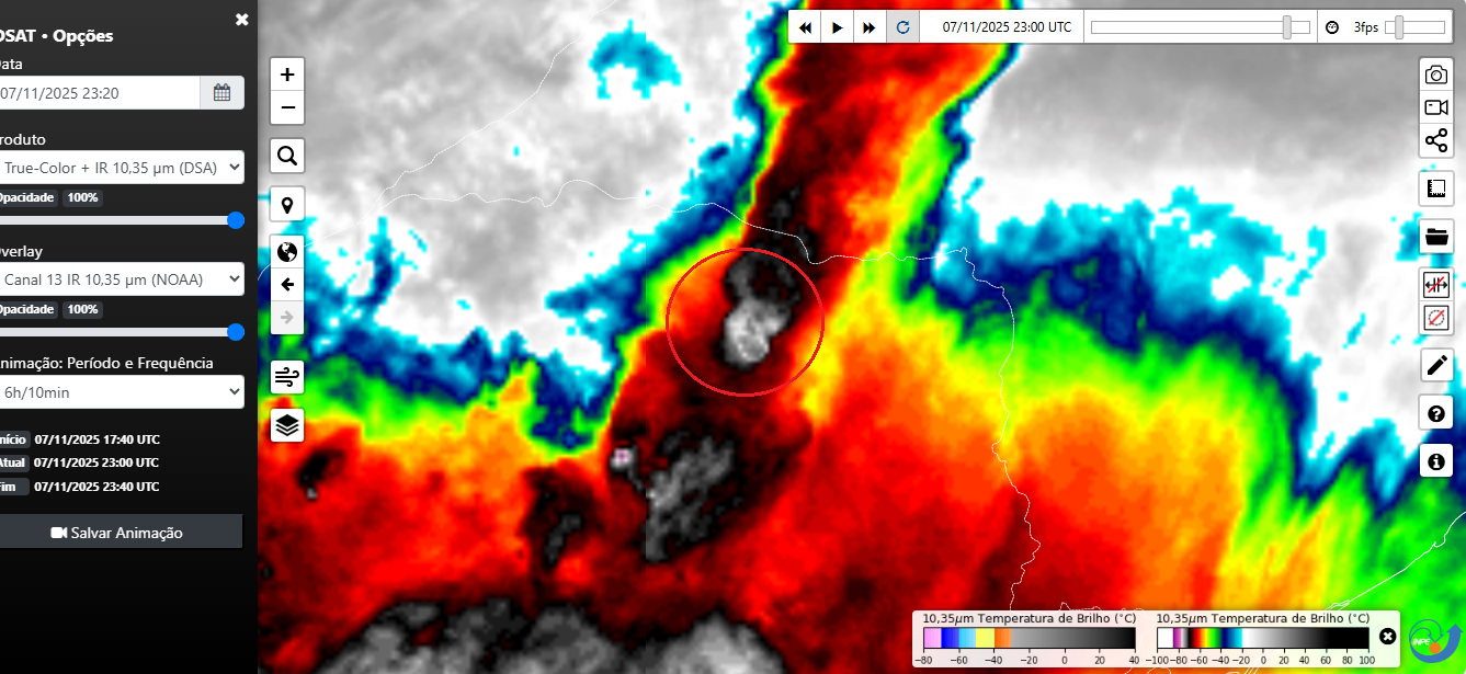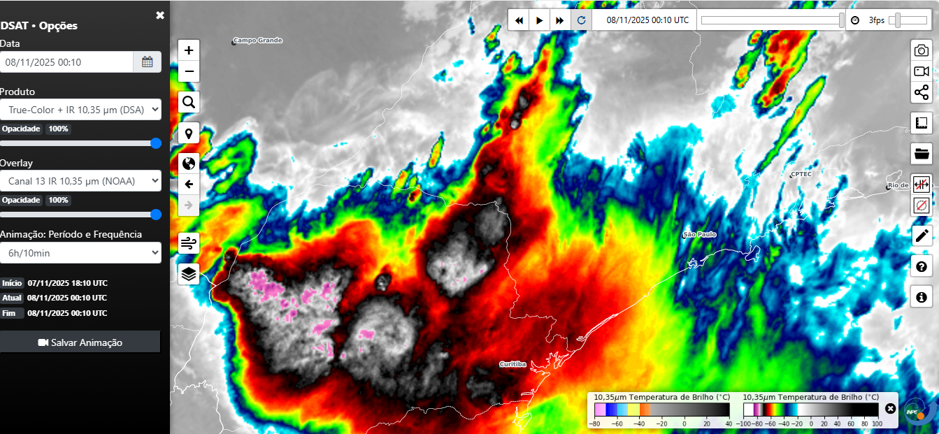 Erik K. dos Santos Posted November 8, 2025 at 12:38 AM Share Posted November 8, 2025 at 12:38 AM (edited) Ponto crítico: as células severas vindas do Paraná chegam ao estado de São Paulo convergindo com os ventos de norte. A mesma supercélula que passou por Mirante do Paranapanema (SP), a qual eu já havia comentado antes, avançou sentido sul e atingiu o norte do Paraná. Foi a responsável pela rajada de 93 km/h em Londrina (PR). Agora, essa tempestade foi desviada para o norte ao interagir com as células severas do Paraná, um indicativo de que forte convergência está presente na região. Edited November 8, 2025 at 12:48 AM by Erik K. dos Santos 14 Link to comment Share on other sites More sharing options...
