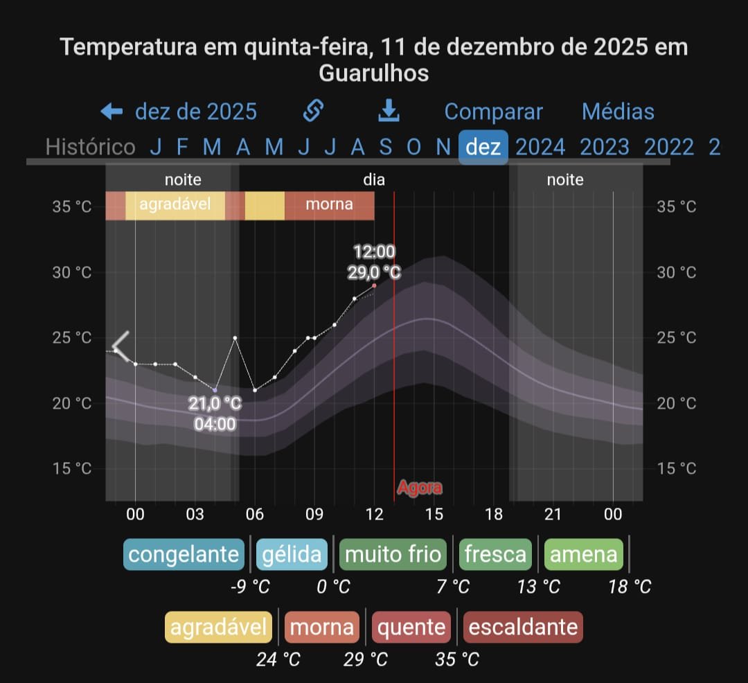 Gabriel Nogeira Posted December 9, 2025 at 09:00 PM Share Posted December 9, 2025 at 09:00 PM Dia nublado no Rio de Janeiro a temperatura máxima alternou entre 30 a 32 graus um pouco abafado saudades das massas polares no outono e inverno que fazia a temperatura máxima fica abaixo dos 25 graus em dia de céu nublado ,saudades do frio úmido que é bom e o calor úmido é incomodo. 8 Link to comment Share on other sites More sharing options...