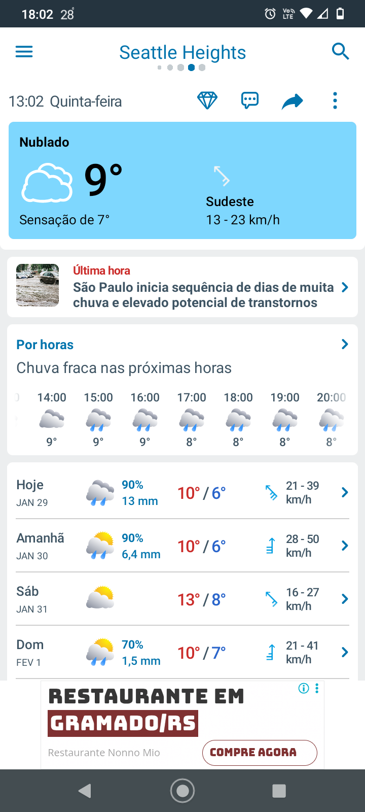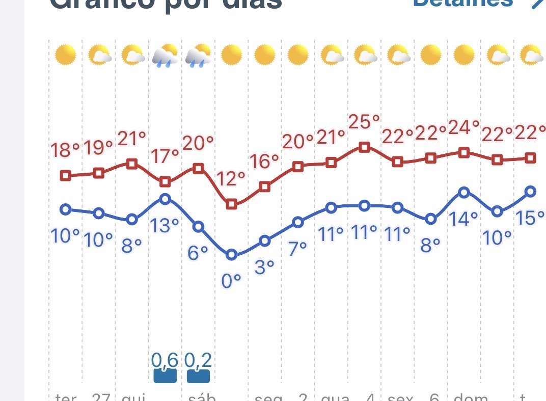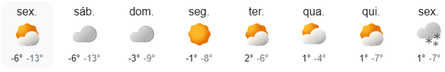EduardoFinatto Posted January 30, 2026 at 02:08 PM Share Posted January 30, 2026 at 02:08 PM Muito frio no leste da América do Norte. A discrepância parece estar muito mais forte na comparação Leste x Oeste do que Norte x Sul. Aqui em Calgary, bem ao norte e a oeste, assim está a previsão para os próximos dias. Parece muito mais que estamos entrando em Abril do que em Fevereiro. E com os dias já ficando consideravelmente mais longos, certamente a neve vai toda derreter. 5 1 Quote Link to comment Share on other sites More sharing options...