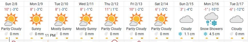 EduardoFinatto Posted February 8, 2026 at 04:50 PM Share Posted February 8, 2026 at 04:50 PM A primeira semana de Fevereiro em Calgary registrou média diária de +6.5°C, o que que é 12.4 acima da média do mês. Isso é mais alto até que a média de Abril. A tabela abaixo mostra isso em detalhes. Da esquerda para direita, temperatura máxima, mínima e a média diária de cada dia, com a última linha mostrando as médias do mês até agora. Fonte Área externa do meu prédio com toda a neve derretida. Vai ser preciso esfriar MUITO para salvar esse mês. Acho que é um forte candidato a Fevereiro mais quente da história. 1 Quote Link to comment Share on other sites More sharing options...