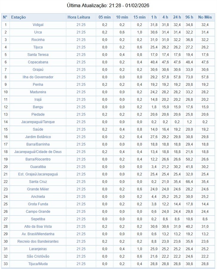 Renan Posted February 1, 2026 at 11:48 PM Share Posted February 1, 2026 at 11:48 PM Em 01/02/2026 em 19:38, pauloribrj disse: RMRJ sendo cercada por fortes núcleos de chuva. Na cidade do Rio, parte da zona sul já chove e também na Ilha do Governador. Fortes núcleos devem entrar pela baía de Sepetiba e Baixada. Estou vendo daqui de Juiz de Fora o festival de relâmpagos nessa região aí de Três Rios que o radar flagrou as instabilidades. Parece mais forte do que o radar indica, porque é coisa de 1 relâmpago a cada segundo praticamente, típico de super-célula. Fevereiro começou com variação normal de 18,0°C a 32,3°C. Uma pancada de chuva na parte da tarde acumulou 6,4mm (primeira chuva do mês). Só espero que seja um Fevereiro bem diferente do 2025, que foi terrível em calor e secura. 9 Quote Link to comment Share on other sites More sharing options...