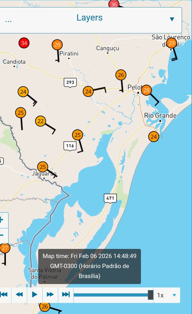 Edison Bocorny Jr Posted February 6, 2026 at 05:52 PM Share Posted February 6, 2026 at 05:52 PM Virada do tempo brusca no sul e Campanha, devendo chegar na RM POA após a meia noite. Por hora, tenho 35.5 graus e só pelos 25 de máxima amanhã e 15/16 domingo de mínima. 10 Link to comment Share on other sites More sharing options...