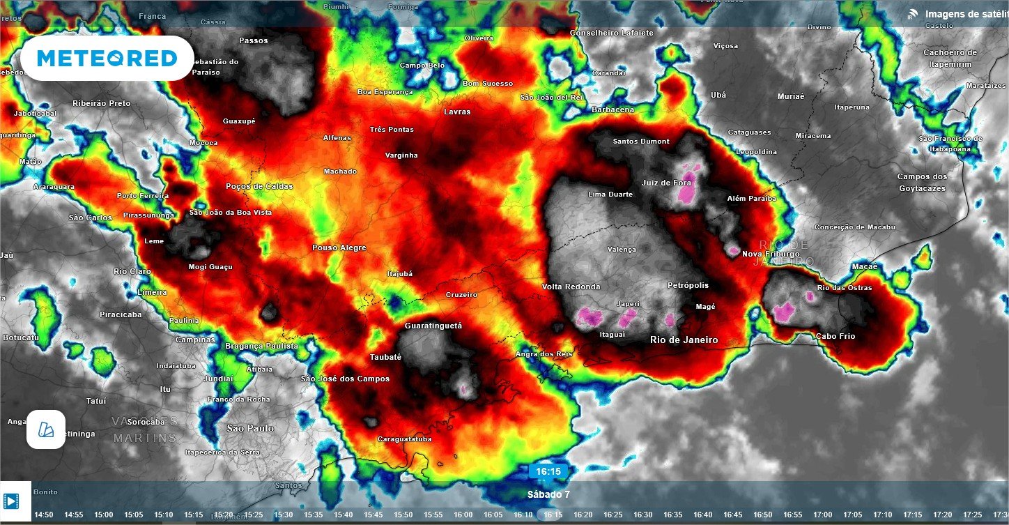 pauloribrj Posted February 7, 2026 at 10:19 PM Share Posted February 7, 2026 at 10:19 PM Boa noite. Depois de um começo de manhã com chuvisco, depois abertura do sol com temperatura chegando a 32,3°C (INMET - Vila MIlitar), agora no final da tarde desabou um temporal daqueles com direito a ventania, granizo e uma quantidade absurda de raios aqui no Rio. Aqui no Parque Anchieta parecia que o vento que ia arrancar meu ipê da calçada e caíram dois raios bem aqui próximos e um eu cheguei a ver atingindo o para-raios de uma igreja a 100m da minha casa. O temporal começou por volta de 15h30 e se prolongou até as 16h20, após isso só ficou com chuva fraca. Aqui na estação do Alerta Rio de Anchieta caíram 44,6mm em 1h de chuva e na estação do INMET Vila Militar que fica a 3Km daqui acumulou 66,2mm na medição de 16h e 17h, com rajadas de vento de 51,1Km/h. Imagem de satélite do momento do temporal: Filmei da janela aqui de casa e no final do vídeo mostra o clarão do raio caindo no para-raios da igreja WhatsApp Video 2026-02-07 at 16.06.39.mp4 Bolsão d'água na estrada aqui perto entre a Vila Militar e o meu bairro: 10 1 Link to comment Share on other sites More sharing options...