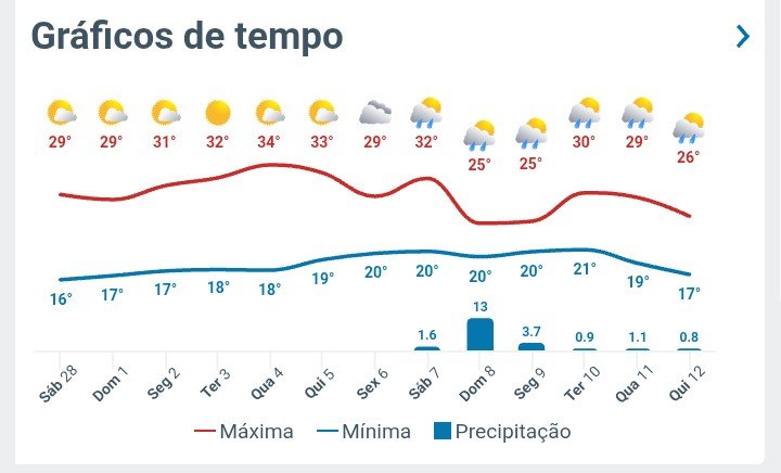 camilo79 Posted February 10, 2026 at 02:45 PM Share Posted February 10, 2026 at 02:45 PM Em Campo Bom, poucas nuvens e temperatura subindo. No INMET, às 11h, 32,1°C de máxima, com 52% de URA mínima. ======================= Em 09/02/2026 em 22:23, Daniel85 disse: eu também estou um pouco cansado desse tempo Off-topic. Faz uns dias que tive a ideia de criar um tópico sobre músicas que mencionam ou são majoritariamente sobre o tempo. Muitas (das que curto) vêm à mente. Um disco que eu traria a este tópico seria Couldn't Stand the Weather, do Stevie Ray Vaughan. E agora li essa tua frase do quote, a coisa me voltou à mente e resolvi trazer o assunto à tona. Pois bem. Não encontrei sub-fórum adequado, apesar de eu ter ficado com a impressão de que - talvez - aqui ( https://www.abaixodezero.com/index.php?/forum/59-pictures-and-video/ ) ou aqui ( https://www.abaixodezero.com/index.php?/forum/55-meteorologia-geral/ ) poderia caber o assunto. Mas não tenho certeza. Podem ajudar? Valeu! 10 Link to comment Share on other sites More sharing options...