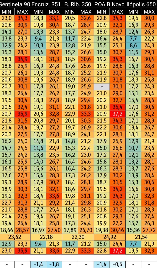 Misael Matos Posted February 5, 2026 at 02:16 PM Share Posted February 5, 2026 at 02:16 PM (edited) - RS em Janeiro, médias ligeiramente abaixo da média na zs e metropolitana. - O inmet pos em funcionamento lá por Set/Out as estações de Santa Vitória do Palmar e Herval, mas acho que aqui no baz é a primeira vez que aparecem. - Botei o desvio das médias do inmet Belém novo em relação as normais climatológicas do Jardim botânico. Edited February 6, 2026 at 07:05 PM by Misael Matos 2 Quote Link to comment Share on other sites More sharing options...