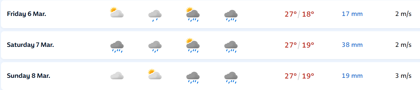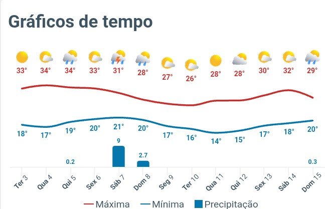 Edison Bocorny Jr Posted March 3, 2026 at 12:36 AM Share Posted March 3, 2026 at 12:36 AM (edited) O segundo dia de março foi ensolarado e temperatura entre 18.3 e 30.9 graus, mas a partir de amanhã a temperatura sobe até sexta feira, quando quinta e sexta deve bater nos 34 graus e chover a partir da tarde de sexta até domingo mas sem intensidade. A tendência é da próxima semana ser outonal por aqui, tipo 15/16 de mínima e 28/29 a máxima. Edited March 3, 2026 at 12:38 AM by Edison Bocorny Jr 8 Quote Link to comment Share on other sites More sharing options...