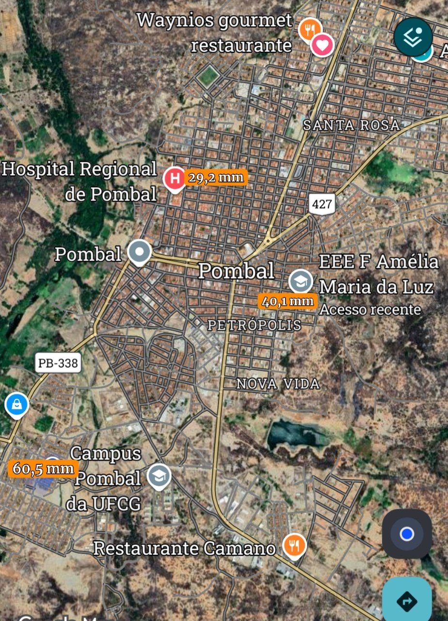 CloudCb Posted March 3, 2026 at 05:21 PM Share Posted March 3, 2026 at 05:21 PM Hoje de madrugada tivemos a ocorrência de chuvas bem volumosas no Sertão da Paraíba. Em Pombal, a chuva teve início por volta das 00:40, caindo de forma intensa por uns 30 minutos, aprox. Não sei que horas ela teve fim, mas ainda chovia (já bem fraco) de 2h. Os volumes na cidade variaram bastante. Aqui em casa foi onde mais choveu: 60,5 mm. A oficial da AESA registrou 40,1 mm e a estação automática no norte da cidade (também pertence à AESA) teve 29,2 mm. Segundo a AESA, os maiores valores acumulados no Sertão ocorreram em: • Olho D'água com 122,6 mm • Emas com 83,6 mm • São José de Espinharas com 79,3 mm • Sousa com 66,6 mm • Uiraúna com 56,3 mm No Cariri do estado, em razão de outras instabilidades, tivemos de destaque o município de São João do Cariri com 96 mm e Alcantil com 57,1 mm. 8 2 Quote Link to comment Share on other sites More sharing options...