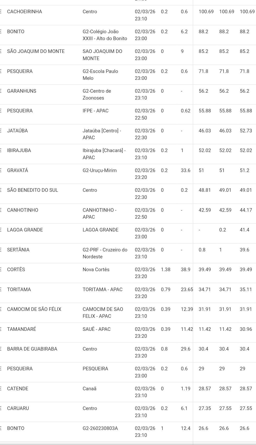 CloudCb Posted March 2, 2026 at 11:24 PM Share Posted March 2, 2026 at 11:24 PM (edited) Em função da completa inversão dos ventos nos 3000 metros (700 hPa), se formou uma linha de instabilidades entre o Cariri da Paraíba e o Agreste do Pernambuco, que está se deslocando em direção ao litoral (SW->NE). YouCut_20260302_201639053.mp4 Por causa disso, várias estações do CEMADEN dessa área do Pernambuco estão registrando chuvas intensas: Confesso que estou muito chocado, porque eu nunca vi uma LI ter esse deslocamento nessa região, ainda mais uma desse tamanho. O semiárido sempre me surpreendendo. Edited March 2, 2026 at 11:25 PM by CloudCb 8 Quote Link to comment Share on other sites More sharing options...
