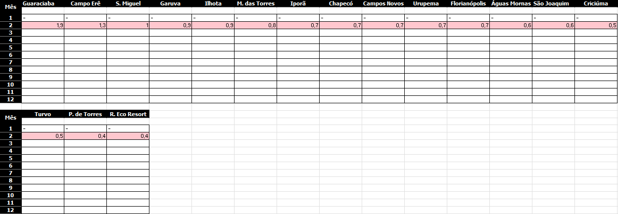 Moretão Posted March 2, 2026 at 11:27 PM Share Posted March 2, 2026 at 11:27 PM Fevereiro é um mês que pode ser mais fresco que janeiro em alguns locais de SC. Mas não ocorreu este ano. Fiz uma brincadeirinha com o desvio em relação a janeiro nestas estações: 8 Quote Link to comment Share on other sites More sharing options...