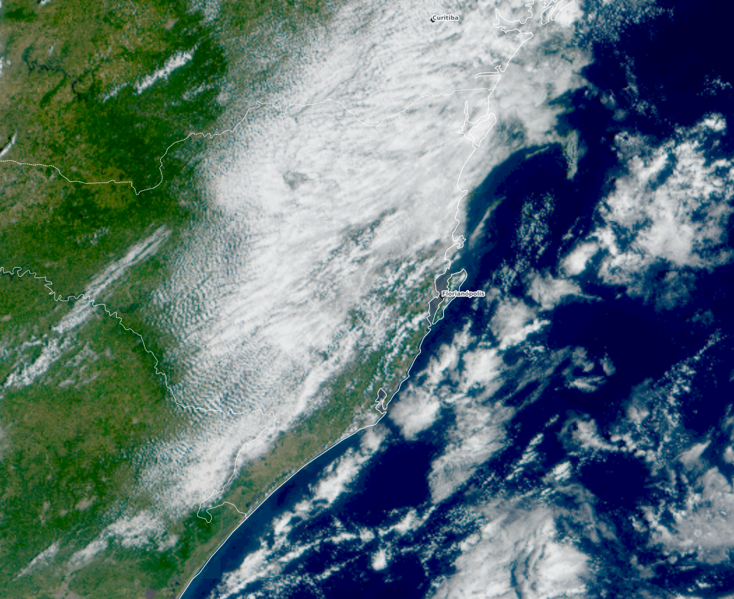 Felipe Backendorf Posted March 2, 2026 at 02:19 PM Author Share Posted March 2, 2026 at 02:19 PM Ontem ficamos entre 20,7ºC e 27,5ºC em Floripa com sol entre nuvens e vento de SE a 4km/h em média. Hoje esfriou mais pela madrugada, fez mínima de 18,1ºC na Epagri. Temos um dia de sol e céu azul faz 26,4ºC com 66% e venta de NO a 7km/h às 11h. A imagem de satélite mostra o motivo daqui ter quase 500h a mais de sol por ano do que Blumenau. É bem sensível pra quem já morou nas duas cidades 11 Quote Link to comment Share on other sites More sharing options...