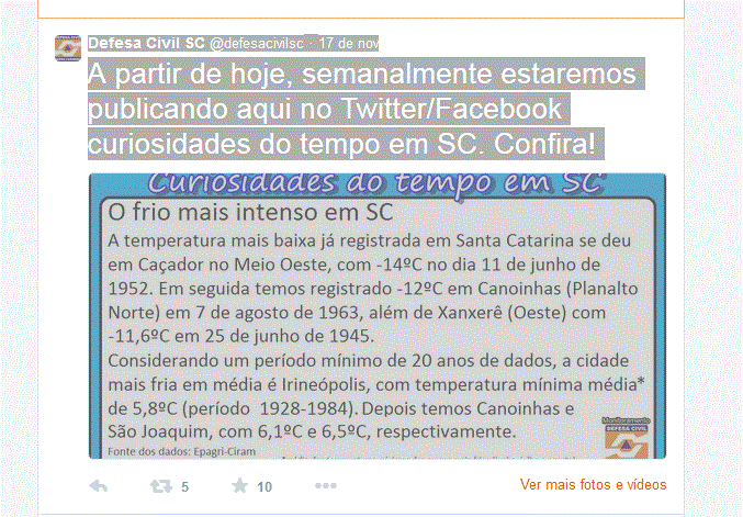 Melo Posted November 26, 2014 at 10:30 AM Share Posted November 26, 2014 at 10:30 AM Alguns acumulados pelo CIIAGRO: Jundiaí-ETEC: 25,2 mm Jundiaí: 41,4 mm Campinas: 31 mm Nos municípios no entorno do Sistema Cantareira: Nazaré Paulista: 9.9 mm Bragança Paulista: 8,9 mm Bom Jesus dos Perdões: 20,3 mm Link to comment Share on other sites More sharing options...