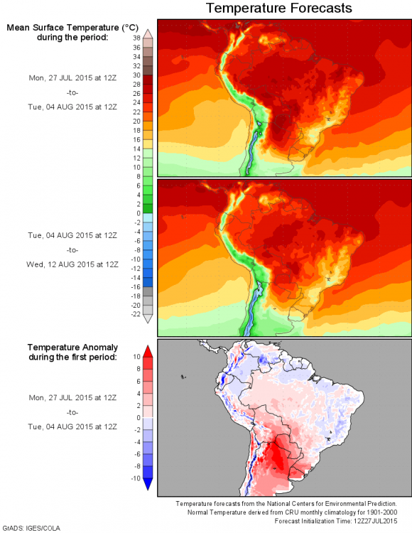 Caio César Posted July 1, 2015 at 01:06 PM Share Posted July 1, 2015 at 01:06 PM Apesar da segunda quinzena abaixo da média em partes do Centro Sul do Brasil, o mês de junho ainda termina assim segundo a análise do CFS: Nenhuma surpresa... ...e segundo o próprio modelo em sua última rodada o mês que se inicia tende a fechar entre na média a ligeiramente acima na maior parte do Centro Sul, sendo a anomalia mais acentuada em boa parte da região Sudeste, do Centro-Oeste e no Nordeste do Brasil. Link to comment Share on other sites More sharing options...