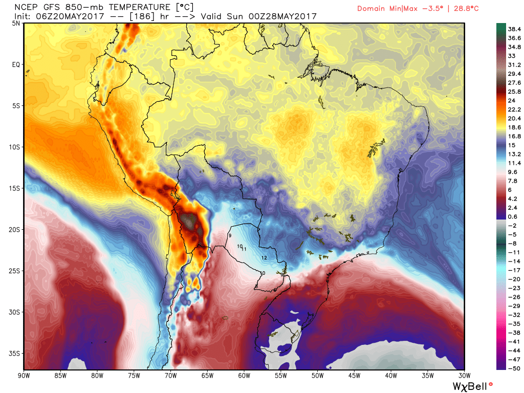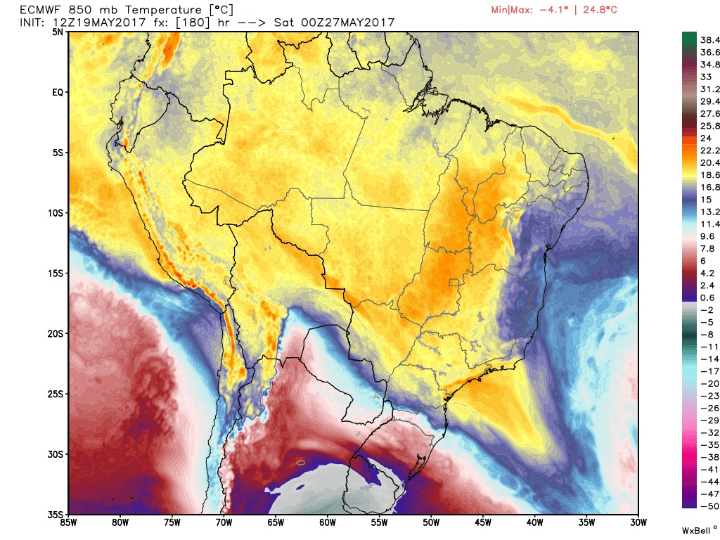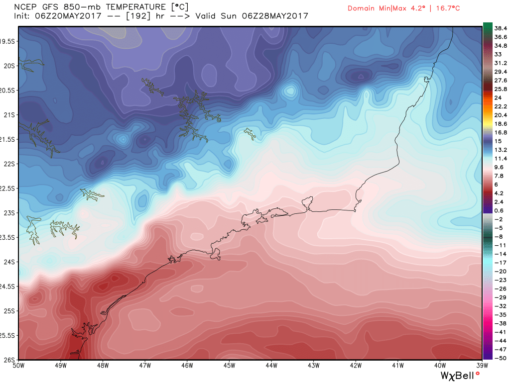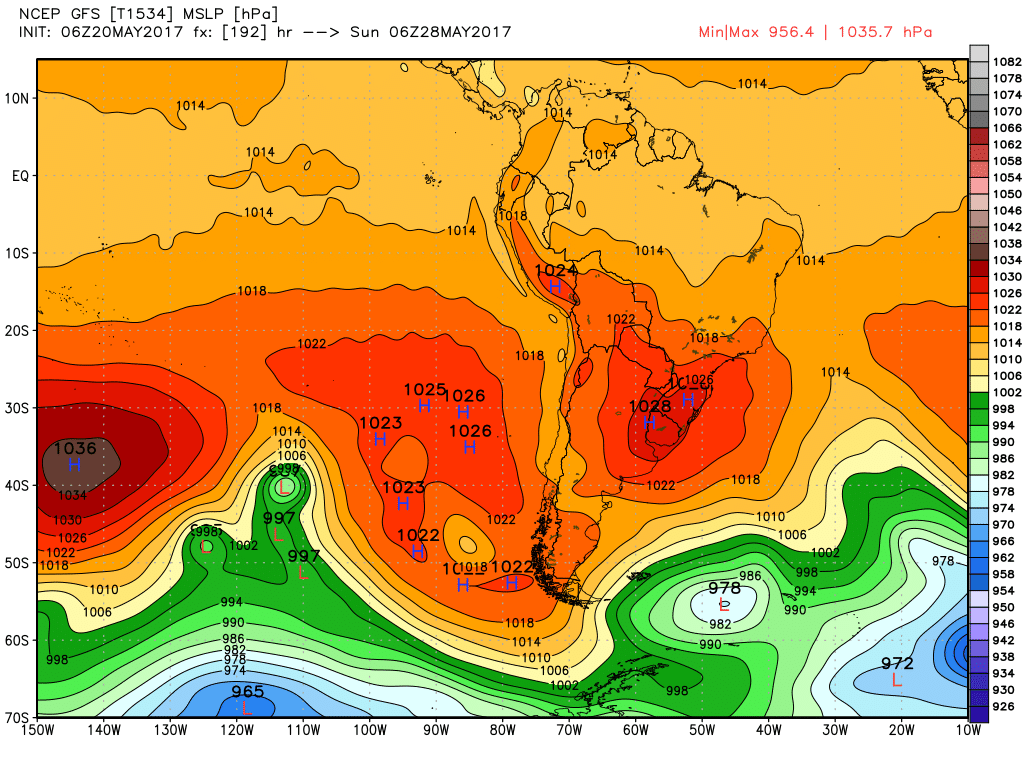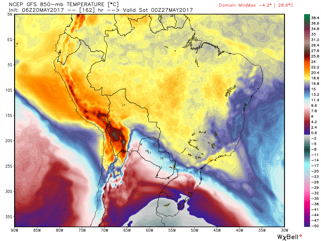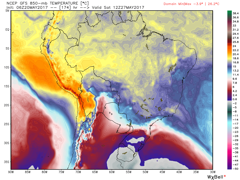 Marcos Posted May 20, 2017 at 01:56 AM Author Share Posted May 20, 2017 at 01:56 AM O GFS/Avn continua dando o corredor polar aberto no final do mês. Uma PODEROSA baixa nas Malvinas vai drenar o ar frio da costa da Antártida até aqui. Chega a -4° em 850 hpa na metade S do RS no sábado 27. Vamos ver. Num quadro desses POA teria máxima de 10°/12°. Incrível. Agora 20,0° cravados cm 76%. Link to comment Share on other sites More sharing options...