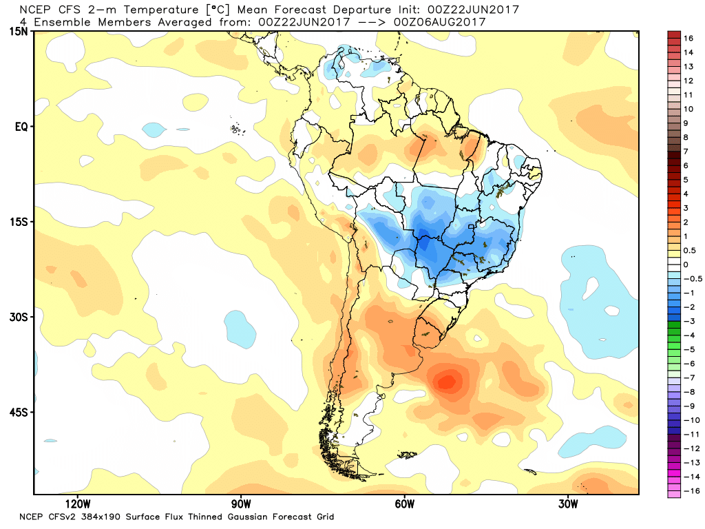 Tassio Amaral Posted June 23, 2017 at 12:33 AM Share Posted June 23, 2017 at 12:33 AM Fazia tempo que não via o verde tomando conta de boa parte do Brasil central. .. DF, sudeste de GO e grande parte da área central de MG e Triângulo mineiro poderão registrar minimas abaixo de 10ºC, incluindo as capitais Brasília, Goiânia e Belo Horizonte... ja a maior parte da Mantiqueira e do sul de MG registrarão negativas ou próximas a zero. ..Já que haverá ASAS, que possa valer a pena para algumas áreas ao menos. ..as baixadas do PNI irão rugir! !! Tudo bem divididinho: Centro-Sul brasileiro ameno, Mantiqueira gelada, sul do RS, Uruguai e nordeste da ARG até a região do Prata com temperaturas bem acima da média e Patagônia congelandooo!!...cenário de bloqueio mais tipico não há. .. Link to comment Share on other sites More sharing options...