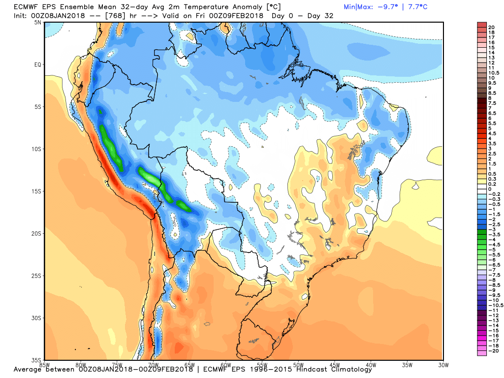 Tstorm Posted January 8, 2018 at 12:42 PM Share Posted January 8, 2018 at 12:42 PM (edited) Semana passada havia dito aqui no BAZ que eu acreditava que janeiro terminaria com chuvas dentro da média por aqui. Estava colocando muita expectativa na chuva que deveria cair na semana passada e também nesta. Entretanto, como disse anteriormente, a chuva da última semana decepcionou e agora, para piorar, a chuva prevista para esta semana diminuiu consideravelmente. Pancadas de chuva, segundo o europeu, só sexta e sábado, e olhe lá. Janeiro (segundo mês mais chuvoso do ano com média de 110 mm) continua com 20 mm em Queimada Nova. Esse valor não deve mudar muito até o final do mês. Edited January 8, 2018 at 12:43 PM by Tstorm 5 Link to comment Share on other sites More sharing options...