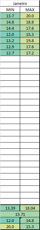 Tomás WRuas Posted January 9, 2018 at 03:14 PM Share Posted January 9, 2018 at 03:14 PM Porto Alegre vai tendo seu janeiro mais fresco desde 2013. Desde lá não temos um janeiro com média mínima sub 20°C. Média máxima sub 30°C, então, desde janeiro de 2009 que não ocorre. Em 2018 está assim até hoje: Mínimas: 19,5° (-0,9°) Máximas: 31,1° (+0,9°) 1 Link to comment Share on other sites More sharing options...