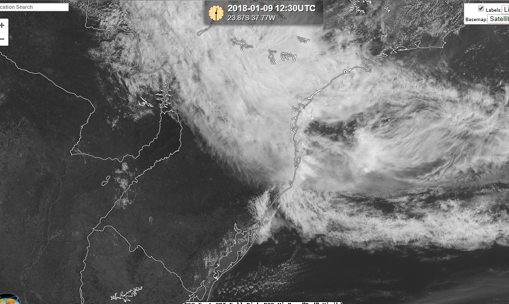Felipe Backendorf Posted January 9, 2018 at 01:19 PM Share Posted January 9, 2018 at 01:19 PM mais um amanhecer fresco em Santa Catarina, mínima de 17,5C aqui em casa. Durante a madrugada a nebulosidade aumentou devido à aproximação do canal de umidade e tenho no momento apenas 25C. Amanhã este canal provocará chuva contínua e máxima baixa situação típica de ZCAS no sudeste. Imagem do GOES 16: Link to comment Share on other sites More sharing options...