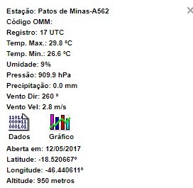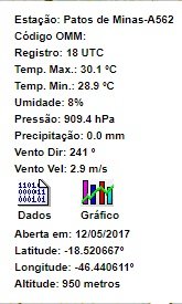 Felipe F Posted August 12, 2018 at 05:05 PM Share Posted August 12, 2018 at 05:05 PM Outras mínimas registradas no Triângulo/Alto Paranaíba em estações particulares na zona rural: Patrocínio (Fazenda Bom Jardim): 1,8ºC Pedrinópolis: 3,6ºC Perdizes (Ponta da Mata): 3,7ºC Perdizes (São José da Antinha): 4,1ºC Araxá (Fazenda Eng. da Serra): 4,2ºC Uberaba (IFTM): 4,2ºC 5 Link to comment Share on other sites More sharing options...