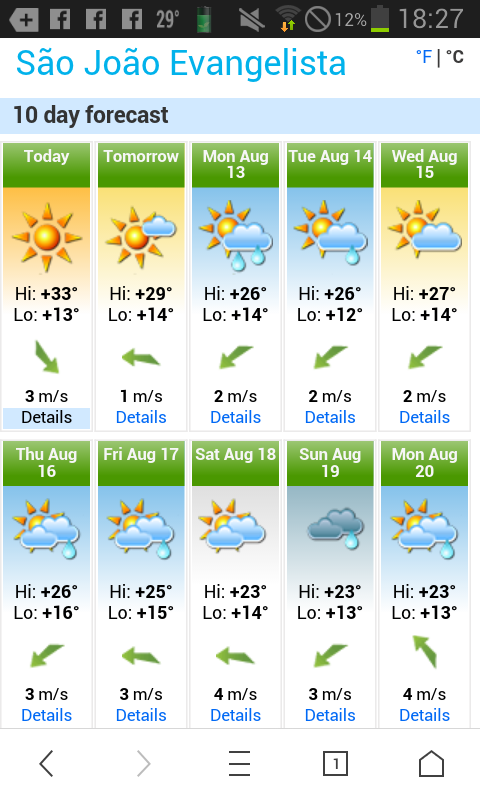 Rafael MG Posted August 12, 2018 at 01:09 PM Share Posted August 12, 2018 at 01:09 PM Hoje tive mínima de 13,1 graus em BH, com céu limpo, e agora tenho 19 graus. A máxima deve ir a 26 graus. Destaque para Florestal, a 60 km daqui, que teve mínima de 3,8 graus. Meu sítio fica lá perto, em Igarapé (uns 25 km em linha reta e clima parecido) e deve ter tido mínima na casa dos 4 graus (mas a máxima deve chegar a uns 27 graus - parece clima de deserto). 2 Link to comment Share on other sites More sharing options...