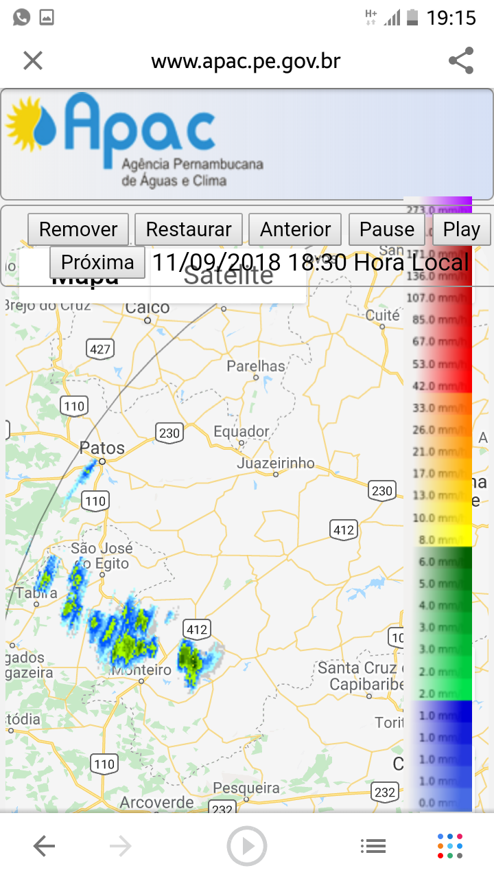 CloudCb Posted September 11, 2018 at 10:25 PM Share Posted September 11, 2018 at 10:25 PM Instabilidades presentes no sul do cariri da PB nesta noite. Espera-se picos de 20 mm, para médias mensais inferiores a 5 mm. 1 Link to comment Share on other sites More sharing options...