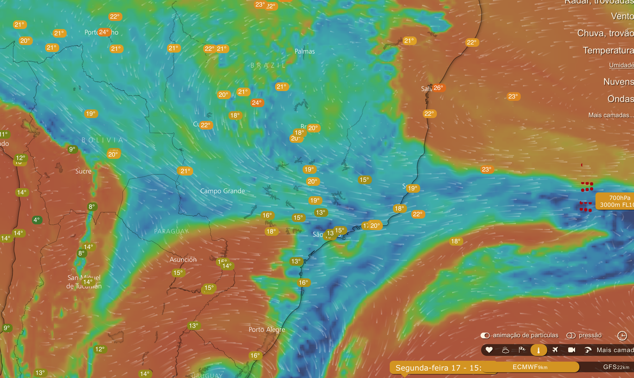 Tassio Amaral Posted September 9, 2018 at 05:02 PM Share Posted September 9, 2018 at 05:02 PM (edited) Boa tarde. .. Agora tenho 26,5ºC e céu de anil... e ao contrário daqueles dias em que a essas horas no mês de setembro ja está com 30ºC ou mais, o que seria bastante comum nessa época e muito incomodo de se andar ao ar livre, tá até agradável e bastante suportável caminhar mesmo com sol a pino nesses últimos dias de tempo limpo, ajudado também pelo vento mais intenso que tem sido constante nesses dias... E quanto a mínima, não fez feio, 7,3ºC nessa manhã, digna de julho!! Ainda teremos aqui pelo menos mais uma ou duas manhãs bem frias de acordo com o canadense... Muito feliz com o frio mas confesso que já estou com muita saudade da chuva, torço pelo europeu para que ele acerte o retorno da mesma ja nessa semana. .. Edited September 9, 2018 at 05:06 PM by Tassio Amaral 3 Link to comment Share on other sites More sharing options...