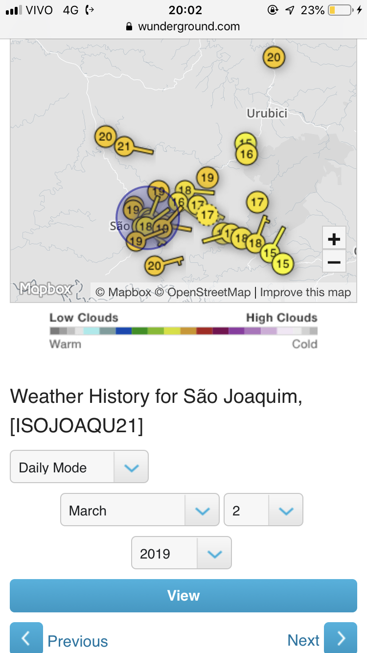Rafael Rezende de loyola Posted March 3, 2019 at 07:52 PM Share Posted March 3, 2019 at 07:52 PM (edited) 20 horas atrás, Guto Cesar disse: Acho que essa estação deve precisar de uma calibradinha então, a insolação deve estar afetando o desempenho. Na região: Inmet: 28.2°C Simepar: 28.4°C Campo Comprido PWS: 28.1°C Pinhais PWS: 27.6°C Aero: 27°C Talvez. MAs a estação não é minha. Mas é a que acompanho por estar mais próxima de casa (1 Km em linha reta pelo google maps). UM dia, talvez eu compre uma estação. Edited March 3, 2019 at 08:09 PM by Rafael Rezende de loyola Link to comment Share on other sites More sharing options...