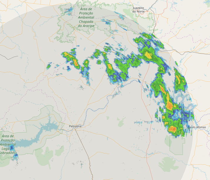 CloudCb Posted April 17, 2019 at 08:23 PM Share Posted April 17, 2019 at 08:23 PM Fim de tarde instável em áreas do NNE. Recorte - Satélite Goes 14 - 17h de 17/04: Recorte - Radar da Funceme - 17h08 de 17/04: 1 Link to comment Share on other sites More sharing options...