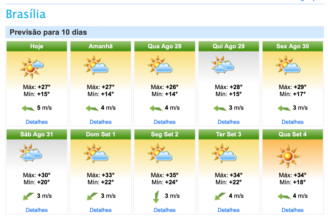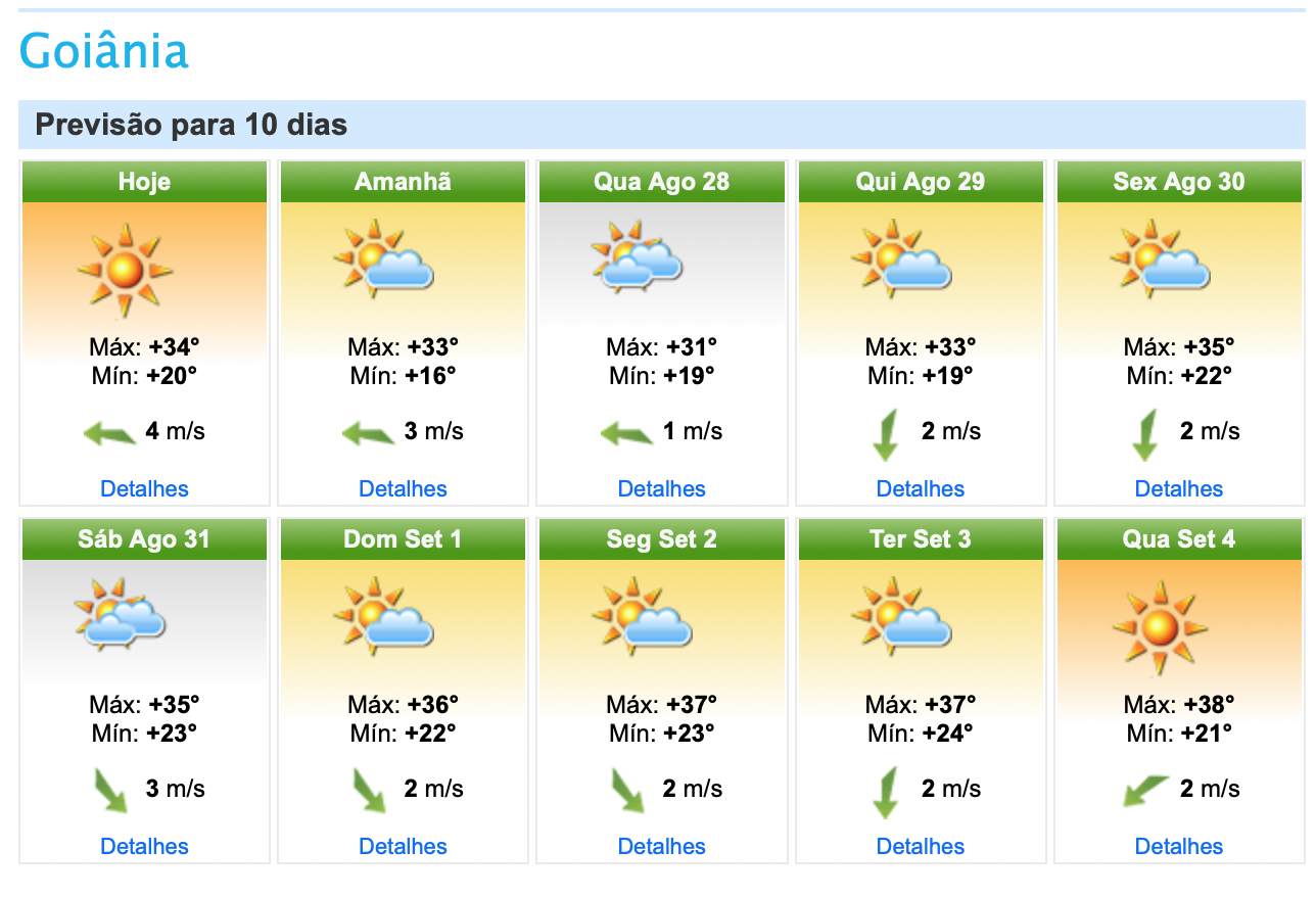 Nowcasting Posted August 26, 2019 at 02:28 PM Share Posted August 26, 2019 at 02:28 PM (edited) Acho bom começarem a considerar uma onda de calor excepcional em Brasília e região: olhem as mínimas! Goiânia: Edited August 26, 2019 at 02:31 PM by Nowcasting 2 3 Link to comment Share on other sites More sharing options...