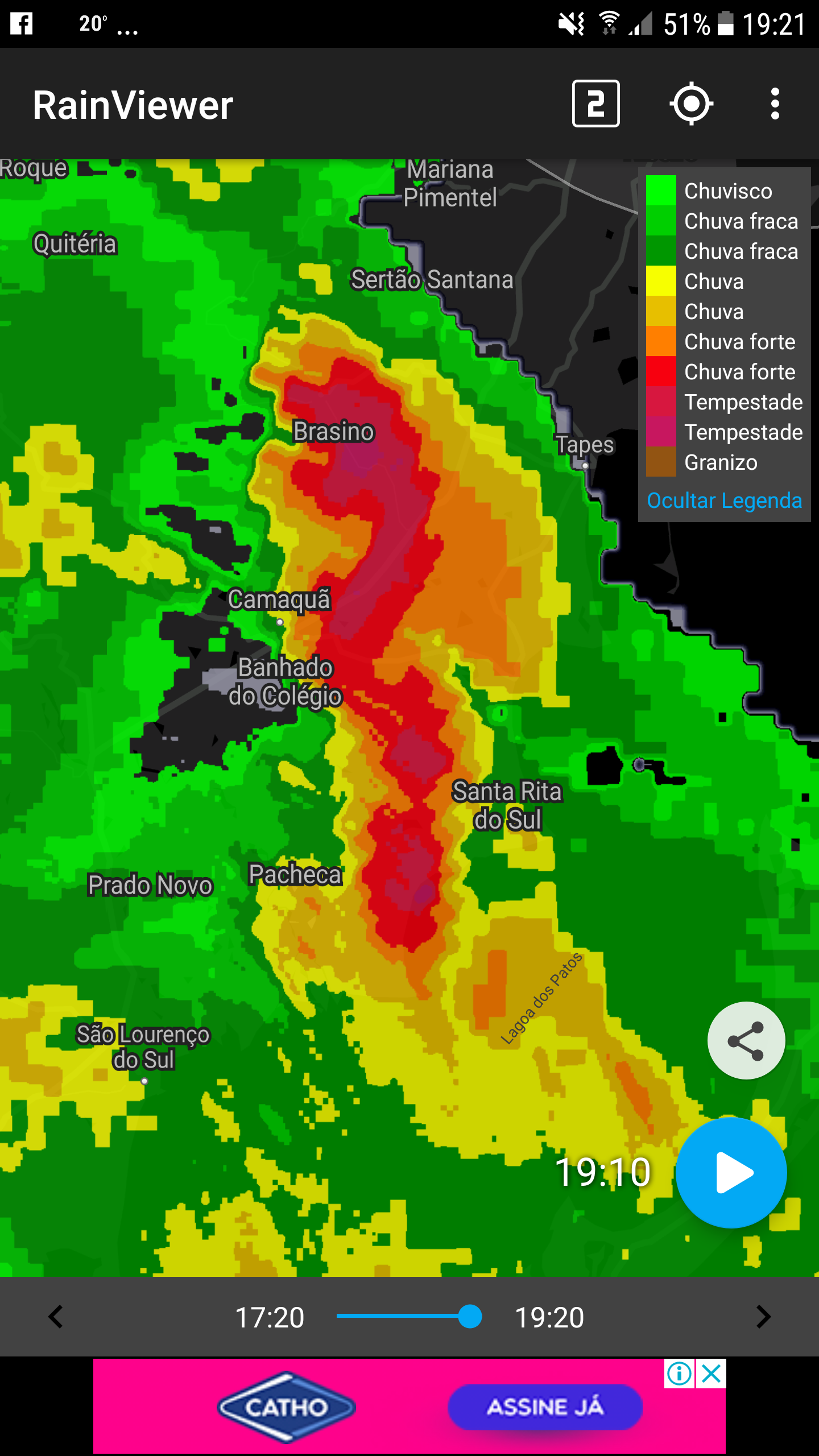 PabloMartins Posted August 30, 2019 at 10:24 PM Share Posted August 30, 2019 at 10:24 PM intensa instabilidade passou por Camaquã e segue em direção à Tapes as margens da Lagoa dos Patos no Rio Grande do Sul, assinatura no radar indica ventania e granizo... alguém tem informações? 1 Link to comment Share on other sites More sharing options...