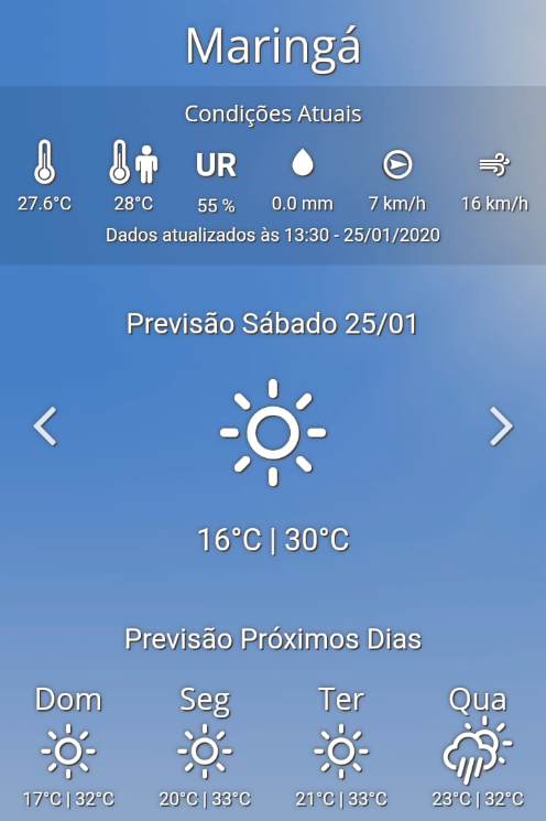 Lucas Venturini Posted January 25, 2020 at 01:53 PM Share Posted January 25, 2020 at 01:53 PM Depois de uma amanhecer frio para a época do ano com mínima de 14°, devemos chegar ou ultrapassar os 28°. No momento 23° com tempo ensolarado. 5 Link to comment Share on other sites More sharing options...