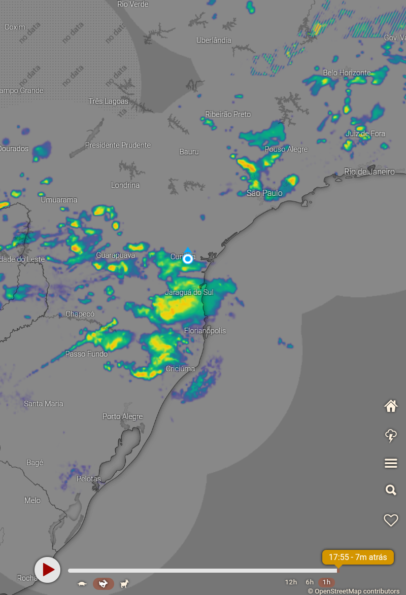 Carlos Campos Posted January 28, 2020 at 03:21 PM Share Posted January 28, 2020 at 03:21 PM Começo de tarde relativamente agradável, com uma brisa animada soprando do oceano e temperatura de 26°C agora ao meio-dia. Por conta da umidade q gira em torno dos 70% a sensação é de um pouco de abafamento. Hoje ao amanhecer uma área de chuvas pairavam ao norte da região de Curitiba. Uma sobra da forte instabilidade da noite passada. Nuvens e chuva (já fraca) ao norte, por volta das 7h30 👇 A expectativa para as próximas horas é de q ocorram novamente pancadas de chuva em áreas isoladas, o q pode trazer um pouco de alívio depois do calor da tarde, porém não são esperados acumulados significativos, à exemplo de ontem, mas do jeito q está, qker coisa é alguma coisa. Os núcleos se instabilidade são raros no estado neste momento. Sinais de trovoada aparecem apenas numa restrita região dos Campos Gerais. 3 Link to comment Share on other sites More sharing options...