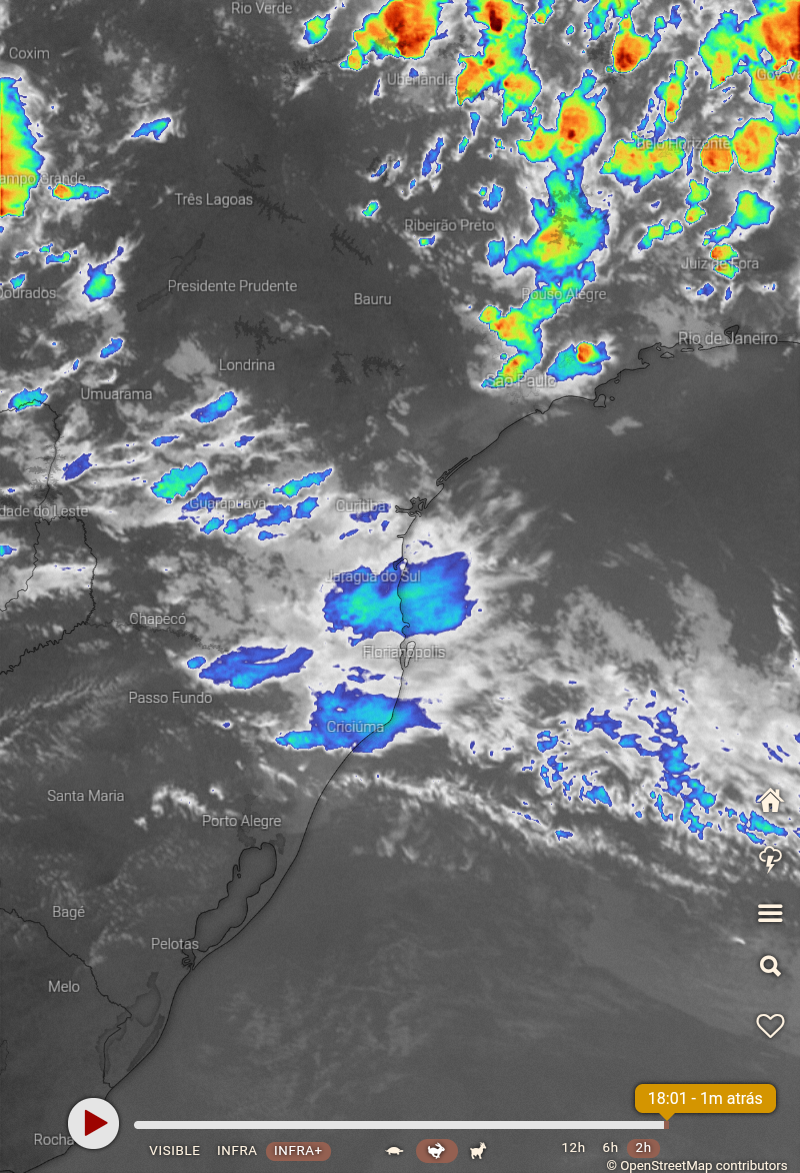 Carlos Campos Posted January 28, 2020 at 09:44 PM Share Posted January 28, 2020 at 09:44 PM Neste fim de tarde a instabilidade e as chuvas são mais abrangentes aki no Sul. Temos a influência de uma frente fria que avança pelo mar. No Sudeste os núcleos de chuva cobrem áreas menores mas estão espalhados por uma área extensa. Imagens regionais (de radar) não mostram muita coisa e provavelmente há muito mais chuva caindo nas regiões do que parece. 8 Link to comment Share on other sites More sharing options...
