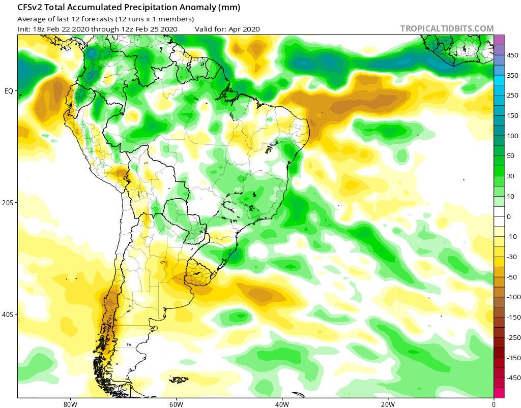 RafaelBHZ Posted February 26, 2020 at 02:50 AM Share Posted February 26, 2020 at 02:50 AM 15 minutos atrás, Pedro Victor P. disse: Se fevereiro tem se mostrado predominantemente positivo no norte do Nordeste, as notícias para o resto da quadra chuvosa, segundo o CFSv2, não são lá muito animadoras: Março ainda deverá ter desvios positivos, mas num grau muito menor em relação ao que era previsto nas rodadas de dezembro/janeiro: Em abril (que em Fortaleza é o mês mais chuvoso do ano, com média de 412,8 mm), grande parte da região tende a apresentar desvios negativos, enquanto o Amapá e o Pará terão desvios positivos, o que provavelmente indica que a ZCIT deverá ficar mais pra lá do que pra cá. E por fim, maio, também seguindo a tendência de apresentar desvios negativos por toda a metade norte do Nordeste: Situação atual dos oceanos: Me surpreende e MUITO o mapa permanecer verde no sudeste em todos os meses. Nem sei quando foi a última vez que isso aconteceu. 5 Link to comment Share on other sites More sharing options...