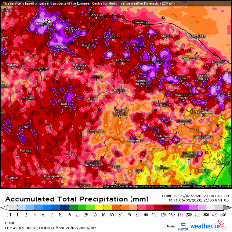 Tstorm Posted February 26, 2020 at 11:59 AM Share Posted February 26, 2020 at 11:59 AM Depois de 3 semanas sem nada muito expressivo por aqui, as coisas parecem que vão voltar a ficar interessantes a partir de sexta. Modelo europeu para Queimada Nova - Yr.no Previsão para os primeiros dias de março está muito boa. Esse que é o mês mais chuvoso do ano na maior parte da região. 6 1 Link to comment Share on other sites More sharing options...