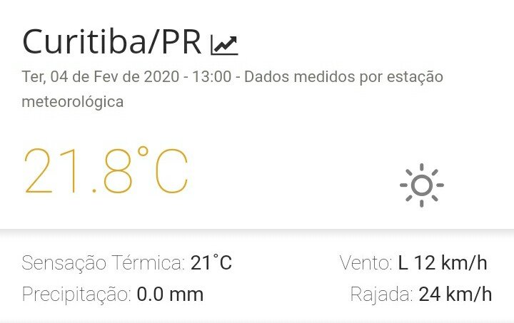 Lucas Venturini Posted February 4, 2020 at 10:12 PM Share Posted February 4, 2020 at 10:12 PM A temperatura máxima hoje em Curitiba foi exatamente a de ontem com 23.3°. Mudou apenas o horário enquanto ontem o pico ocorreu as 9 da manhã, hoje foi as 13 horas. 3 Link to comment Share on other sites More sharing options...