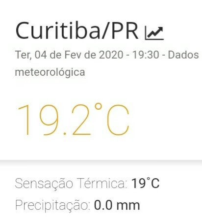 Rafael Rezende de loyola Posted February 4, 2020 at 07:11 PM Share Posted February 4, 2020 at 07:11 PM Boa tarde. 3º dia seguido ameno aqui em Curitiba. Ontem fui dormir cedo e descobri hoje que a mínima foi invertida na AHU ( 17,9 de manhã e ficou em 17,2 até a meia noite). Hoje a mínima 17,1. Média mensal de 21,3 aqui por enquanto ( +0,3). Levemente acima da média 81 -2010. 8 Link to comment Share on other sites More sharing options...