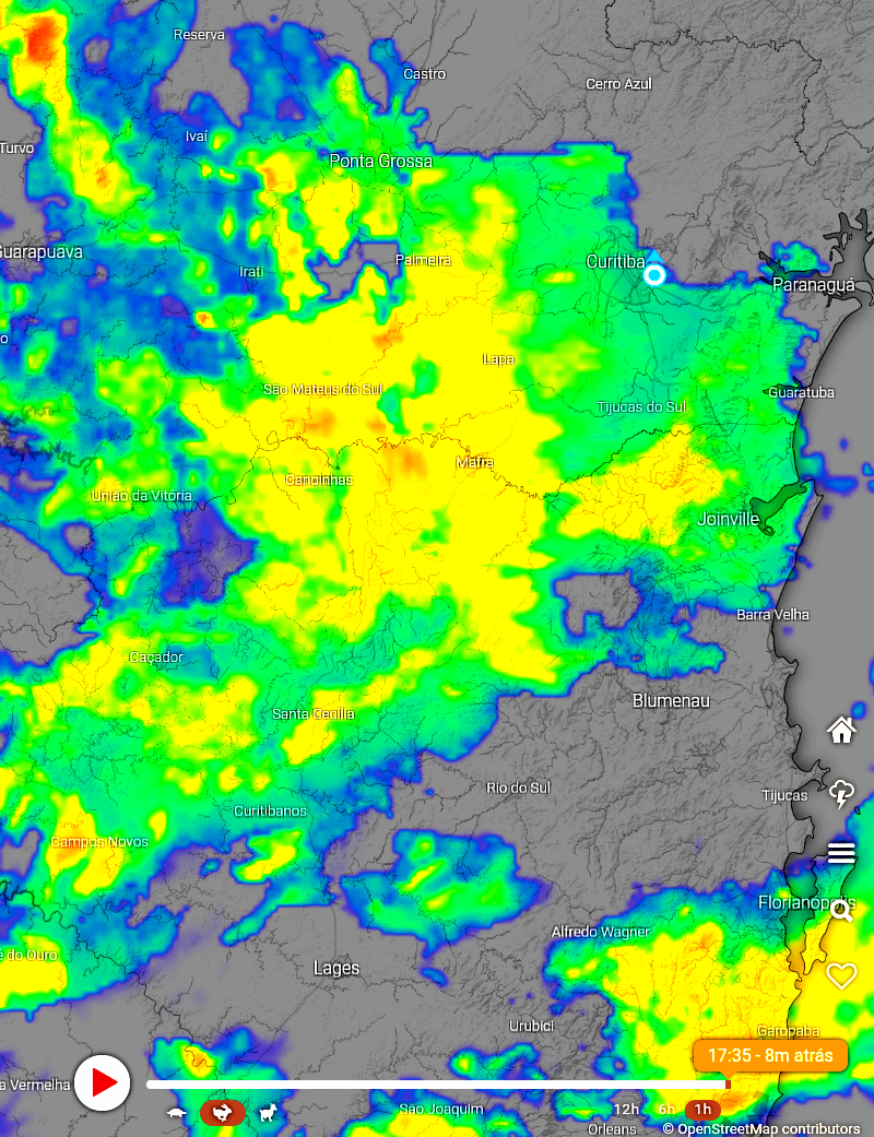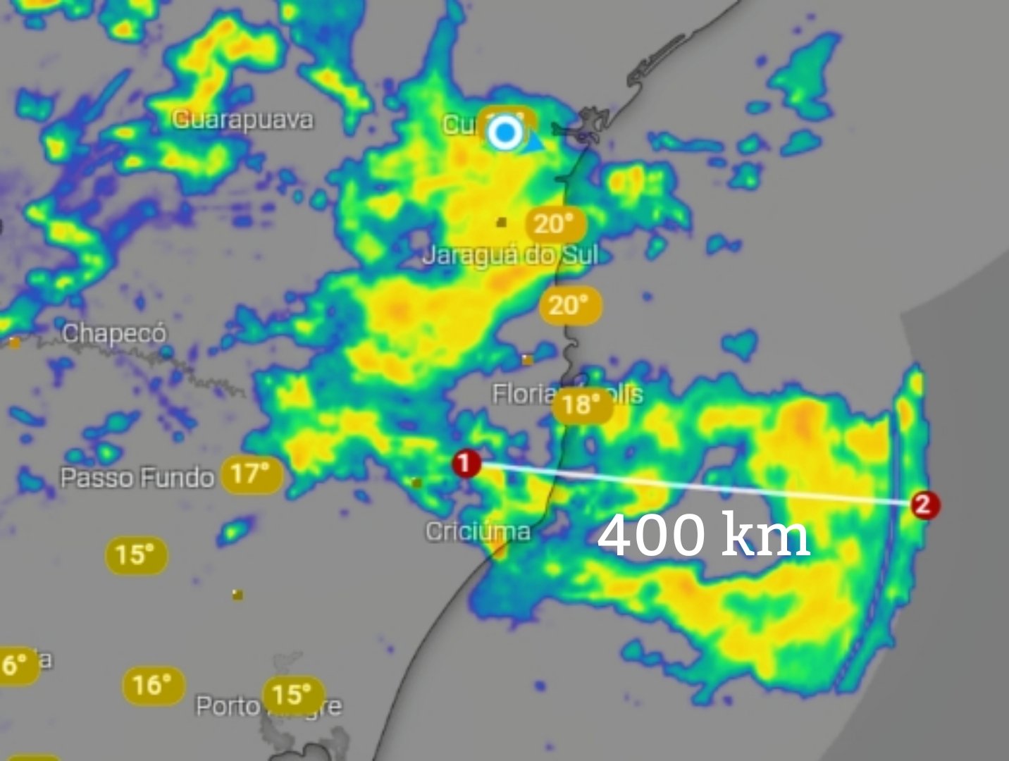 Carlos Campos Posted June 9, 2020 at 10:32 PM Share Posted June 9, 2020 at 10:32 PM Radar do MI pegando as chuvas em alto-mar, cerca de 400 km do topo da Serra Catarinense. Acumulado em Pato Branco até o começo da noite já atingiu 117 mm. No sul de Curitiba já acumulou 39 mm na Lapa e mais ao sul, 49 mm em Rio Negro. Guarapuava com 37 mm. 5 1 Link to comment Share on other sites More sharing options...