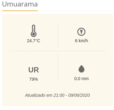 Rafael Posted June 9, 2020 at 10:06 PM Share Posted June 9, 2020 at 10:06 PM Boa Noite a todos.... Jesus, 19 horas da noite e tenho 19 graus na área urbana, temperatura de verão para o horário, muito acima do esperado.. Pelo menos tive um friozinho vampiro pela manhã, minima de agradáveis 11°C aqui em casa e em Salinas 7°C. 9 Link to comment Share on other sites More sharing options...