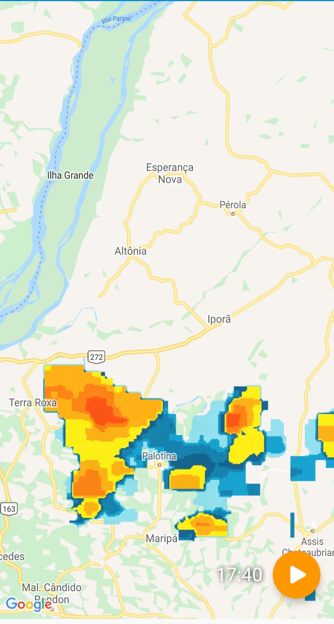 JOÃO MARCOS Posted June 9, 2020 at 08:21 PM Share Posted June 9, 2020 at 08:21 PM Dia chuvoso em Guarapuava, o sol nem ameaçou aparecer. Pouca variação de temperatura ficou entre 16 e 19ºC. Por vezes choveu forte.Enfim, um dia desagradável. A previsão fala em tempo mais seco nos próximos dias, apesar de quente. 5 Link to comment Share on other sites More sharing options...