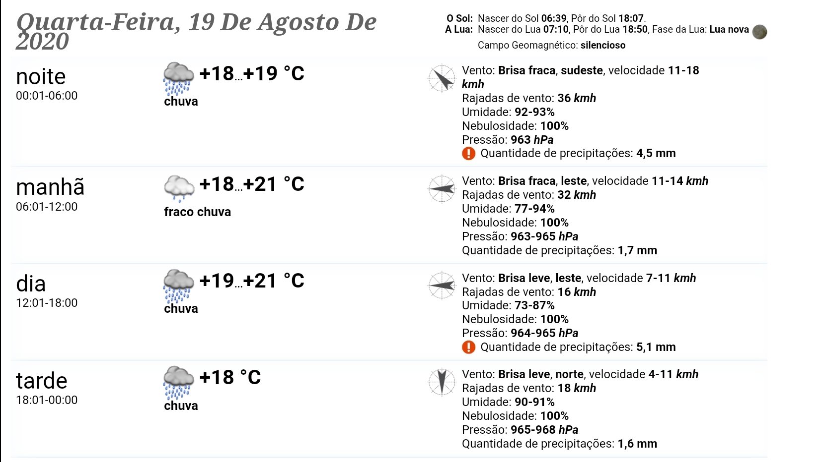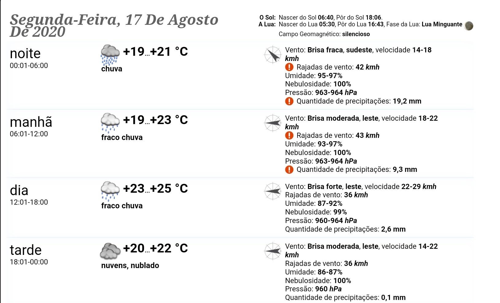 CloudCb Posted August 11, 2020 at 11:18 AM Share Posted August 11, 2020 at 11:18 AM Mínimas na região, com dados das automáticas do INMET (valores Sub-17) Ibimirim (PE): 12,5°C Pico do Jabre; Maturéia (ambas na PB): 13°C * Arcoverde (PE): 13,4°C Monteiro (PB): 13,8°C Ouricuri (PE): 15,2°C Serra Talhada (PE): 15,5°C Floresta (PE): 15,6°C Garanhuns (PE): 15,8°C Tianguá (CE): 16,2°C Cabrobó (PE): 16,6°C São Gonçalo (PB): 16,8°C Palmeira dos Índios (AL): 16,9°C * Wunderground 14 Link to comment Share on other sites More sharing options...